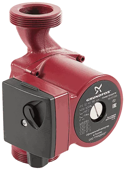 The Grundfos UPS 25-60 is another example of equipment designed for domestic use. This unit delivers a maximum head of 6 m and can pump up to 3.4 m³ of coolant per hour. It features a wet rotor and three speeds. It is used not only in heating systems but also in air conditioning systems.